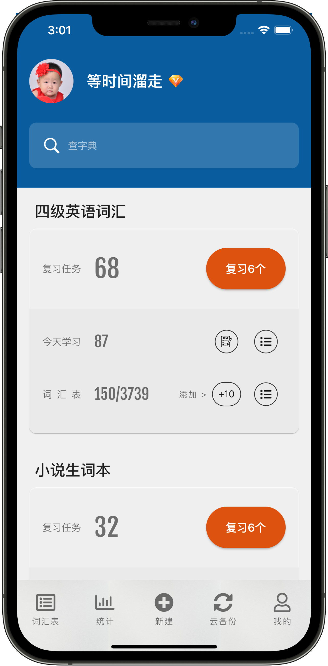 - 单词、口语、文章、科学,各种内容随意添加,任何你想记住的知识,都可以加入生词本。